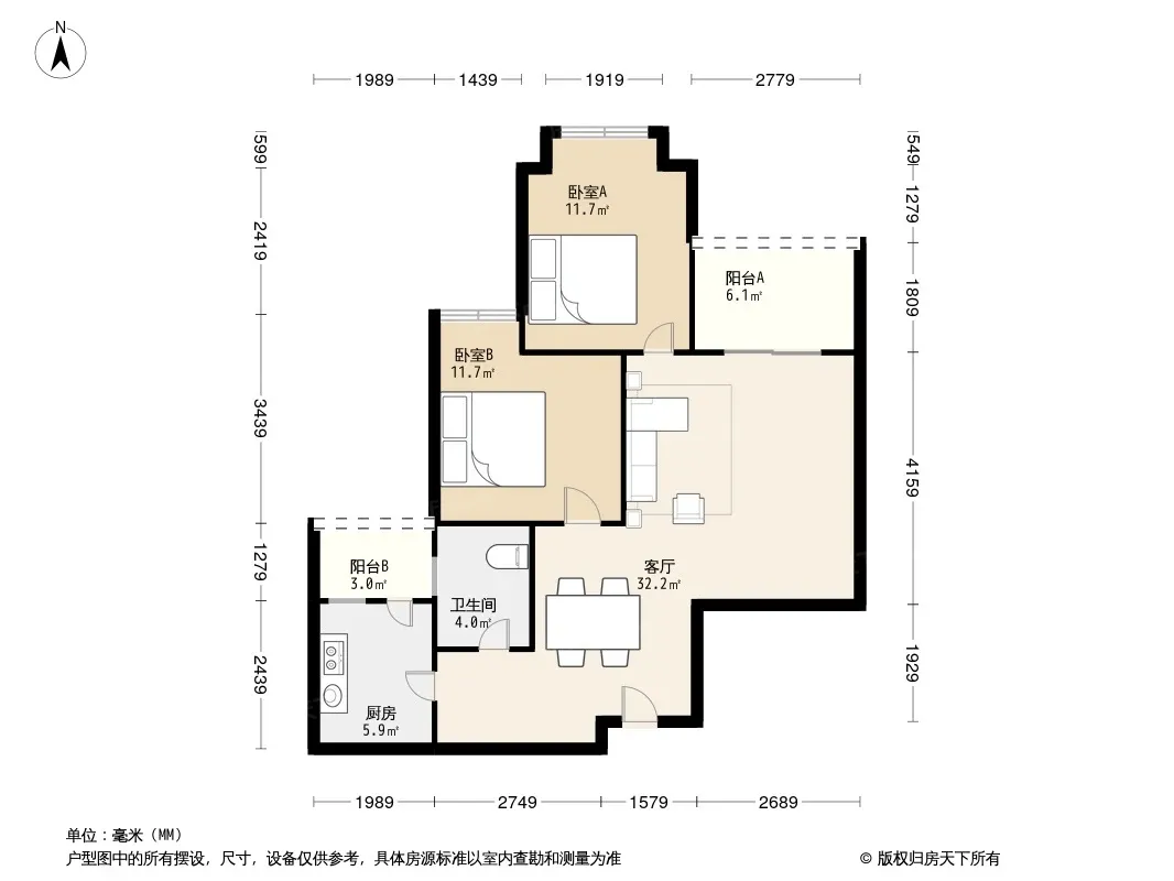 户型齐全,主打户型方正,双阳台二居