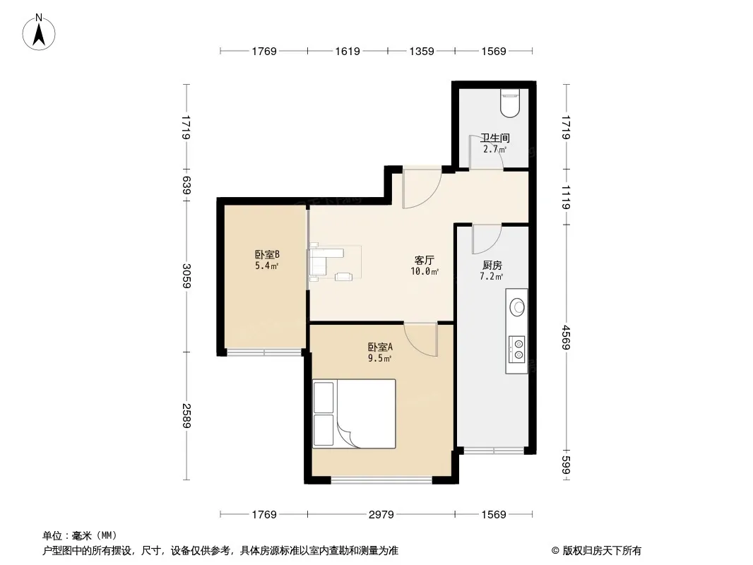 户型齐全,主打客厅朝南,明卫二居