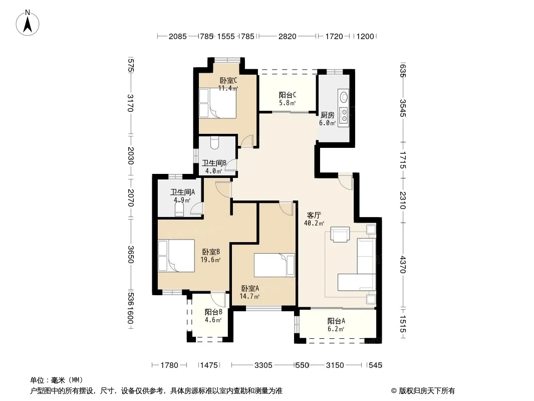 户型齐全,主打户型方正,明卫,客厅朝南四居
