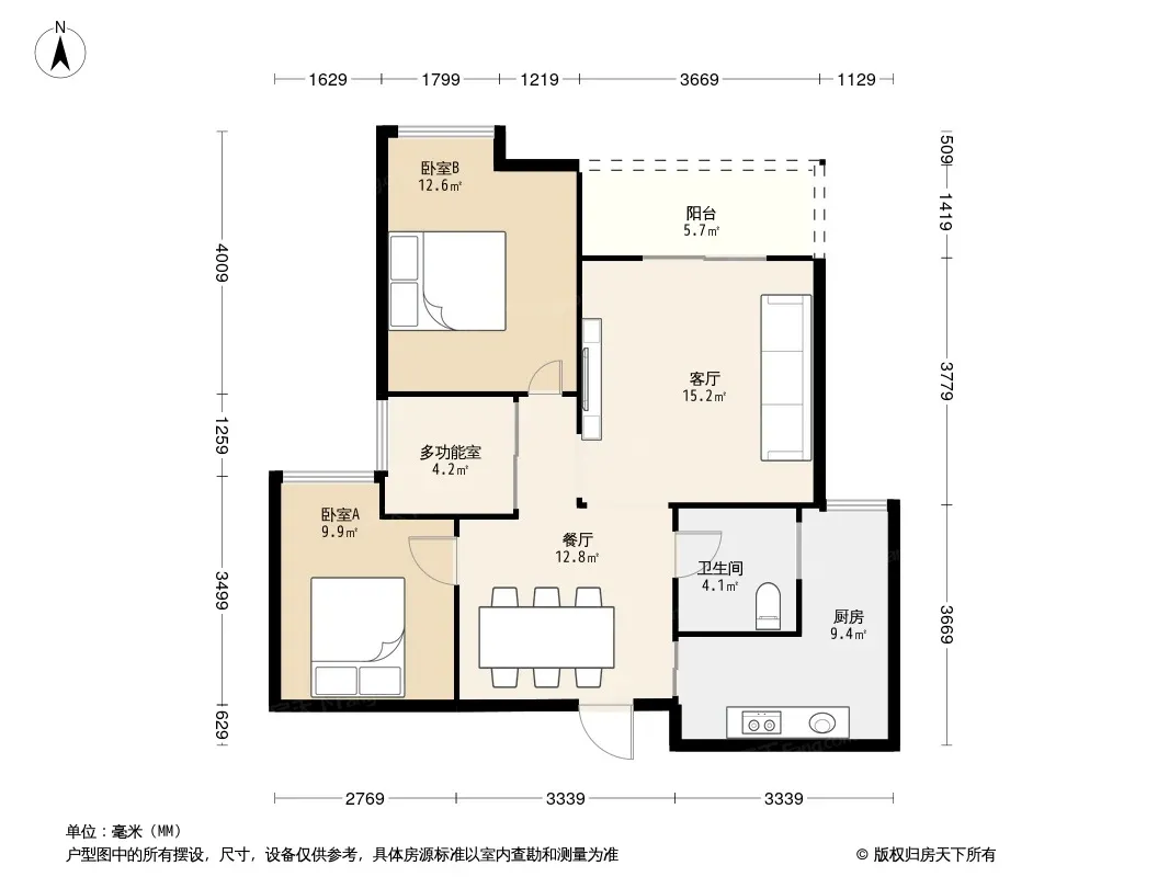 户型齐全,主打户型方正,双阳台,双卧朝南,主卧朝南三居