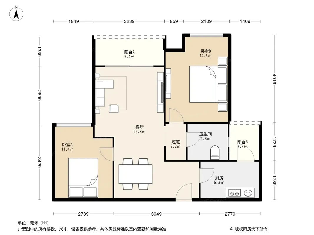 户型齐全,主打明卫,客厅朝南三居