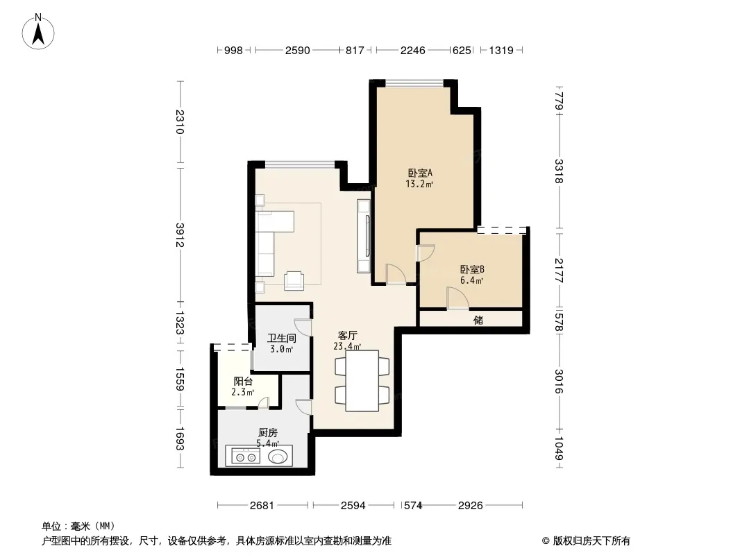 户型齐全,主打客厅朝南二居