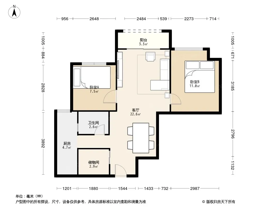 户型齐全,主打客厅朝南二居