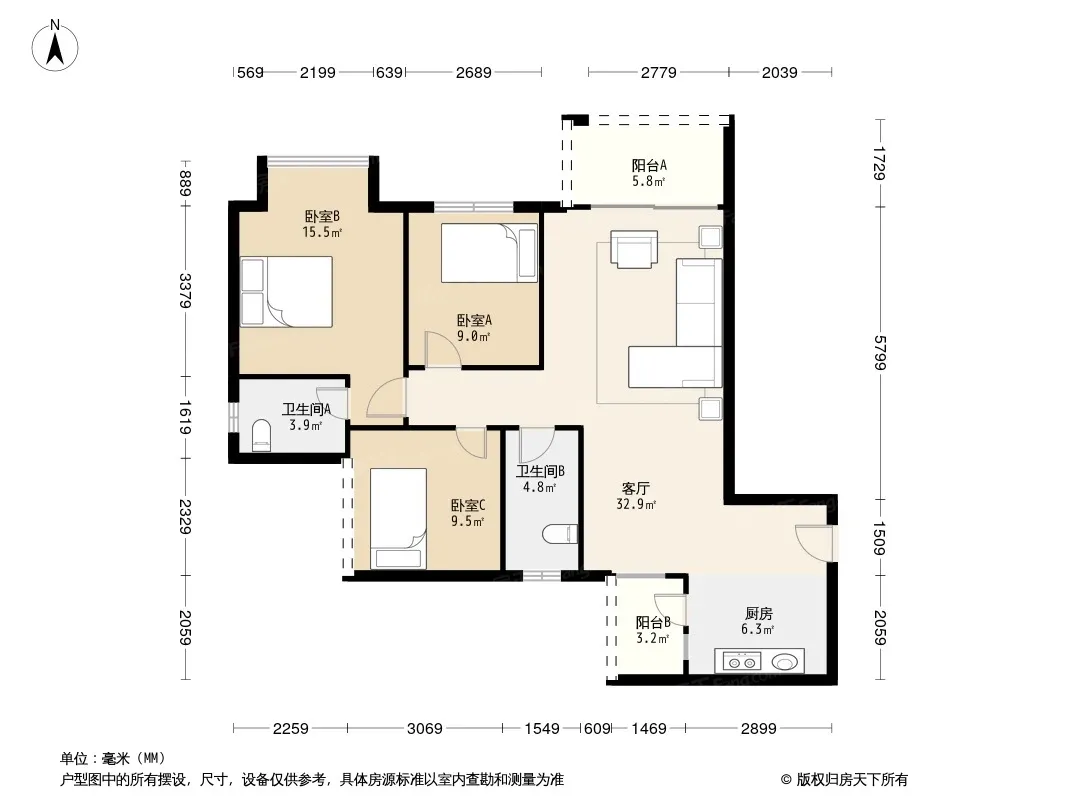 户型齐全,主打户型方正,明卫,双阳台三居