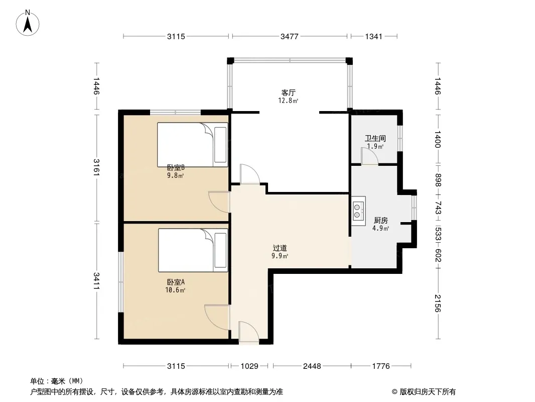 户型齐全,主打户型方正,明卫,明厨,客厅朝南,全明格局二居