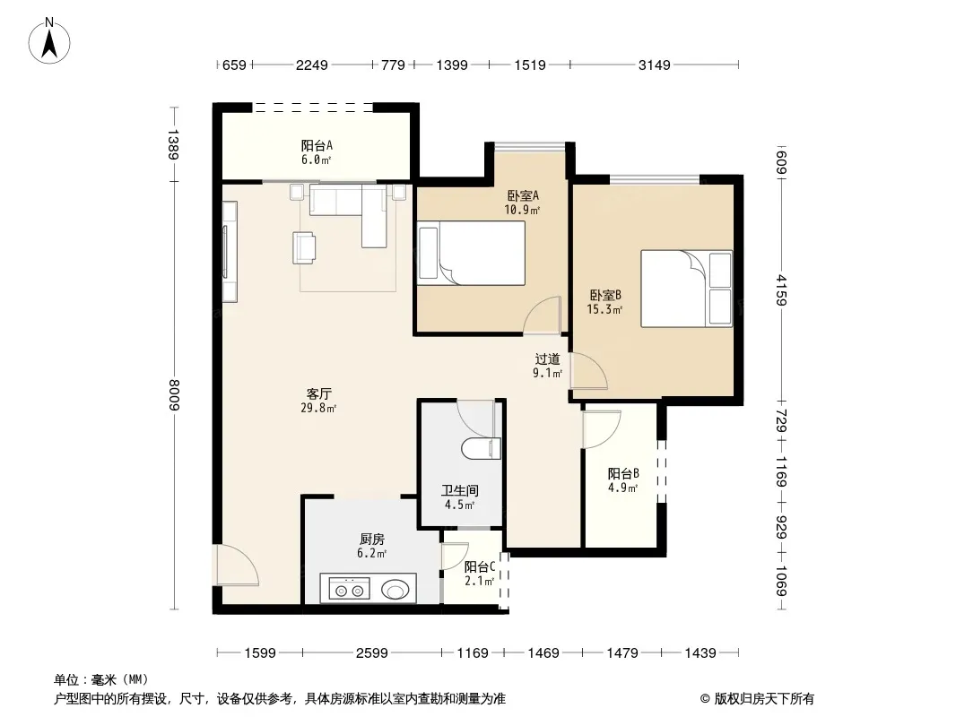 户型齐全,主打南北通透,全明格局,户型方正二居