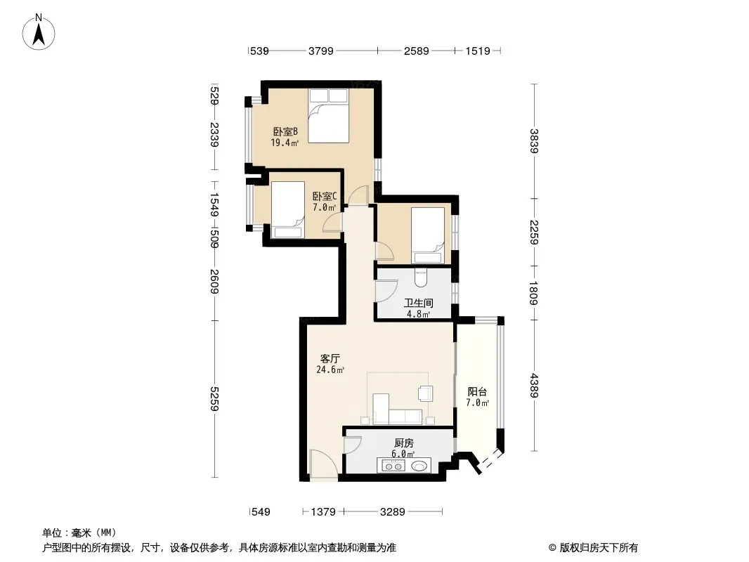 户型齐全,主打南北通透,全明格局,户型方正,动静分离三居