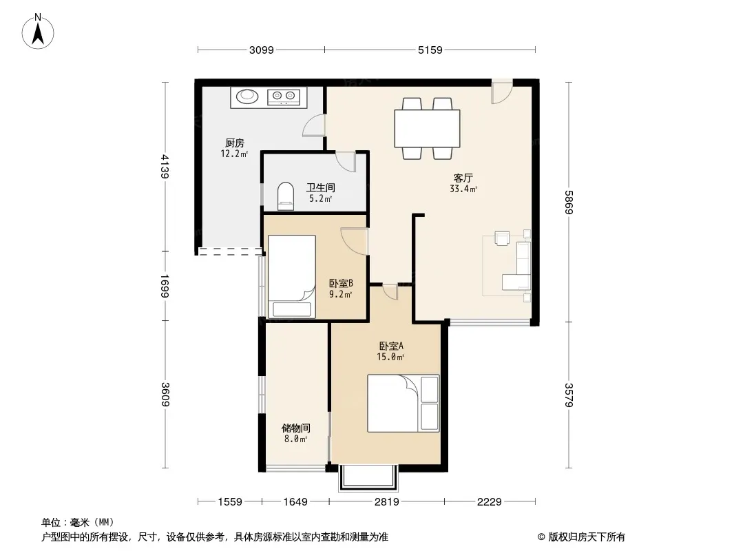 户型齐全,主打户型方正,明厨,主卧朝南二居