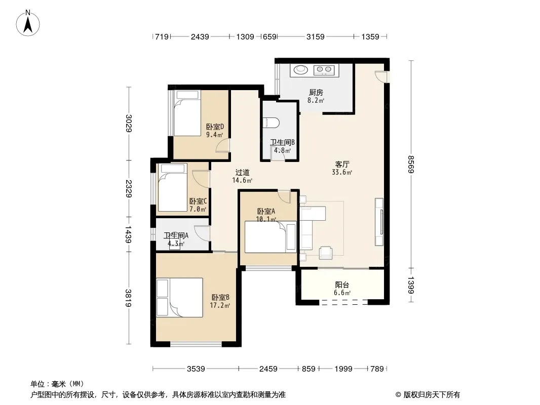 户型齐全,主打户型方正,明厨,明卫,客厅朝南,双卧朝南三居