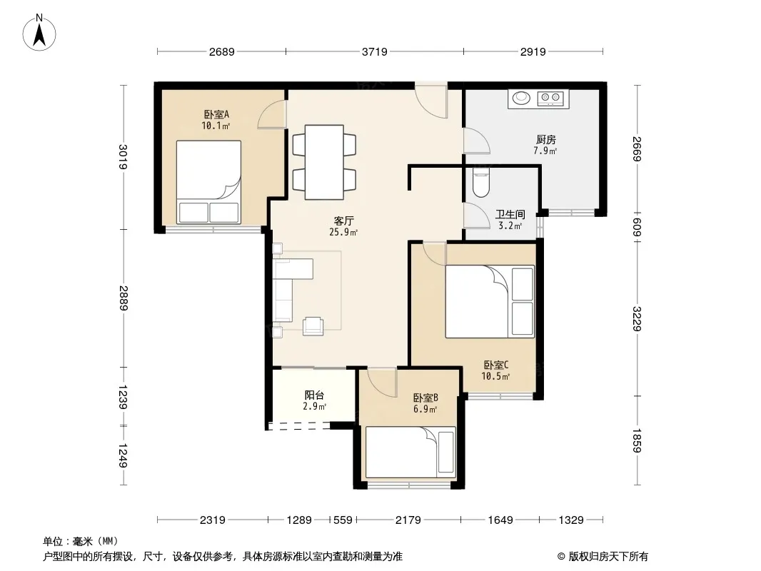 户型齐全,主打户型方正,明厨,明卫,客厅朝南,双卧朝南三居