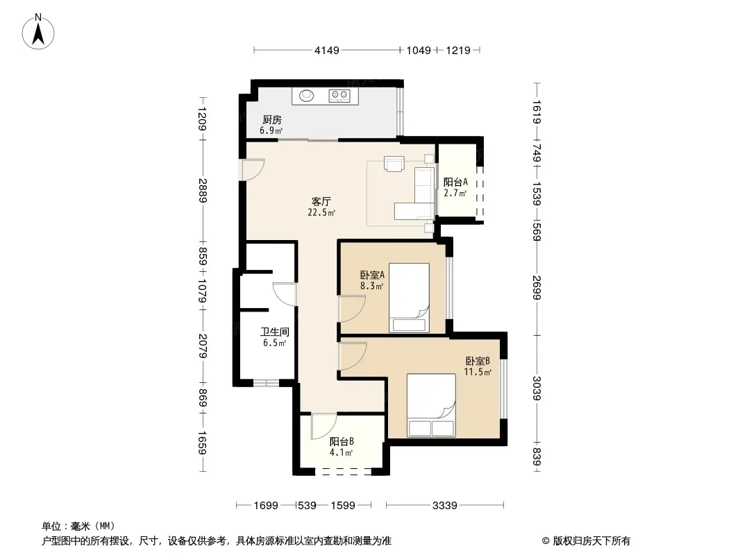 户型齐全,主打户型方正,明厨,明卫,客厅朝南,双卧朝南三居