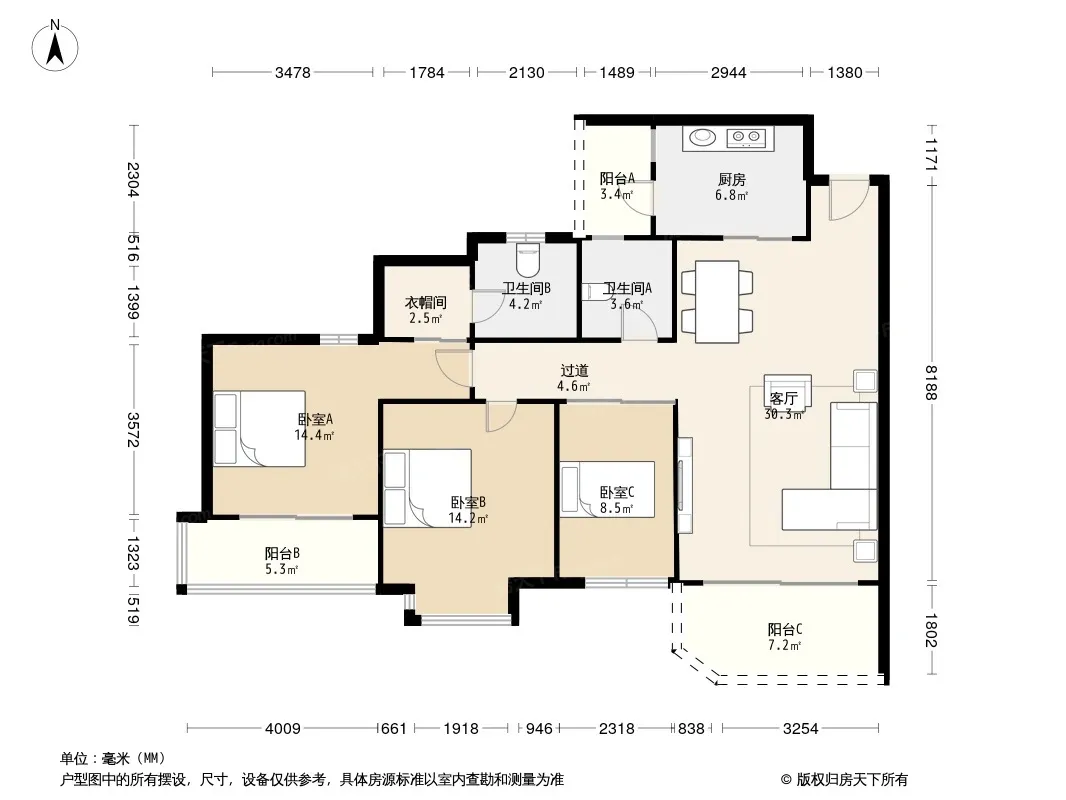 户型齐全,主打明卫三居