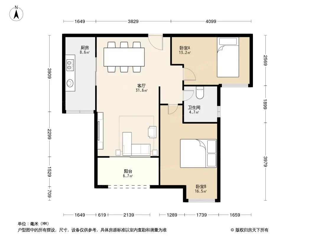 户型齐全,主打明卫,客厅朝南,双卧朝南,主卧朝南二居
