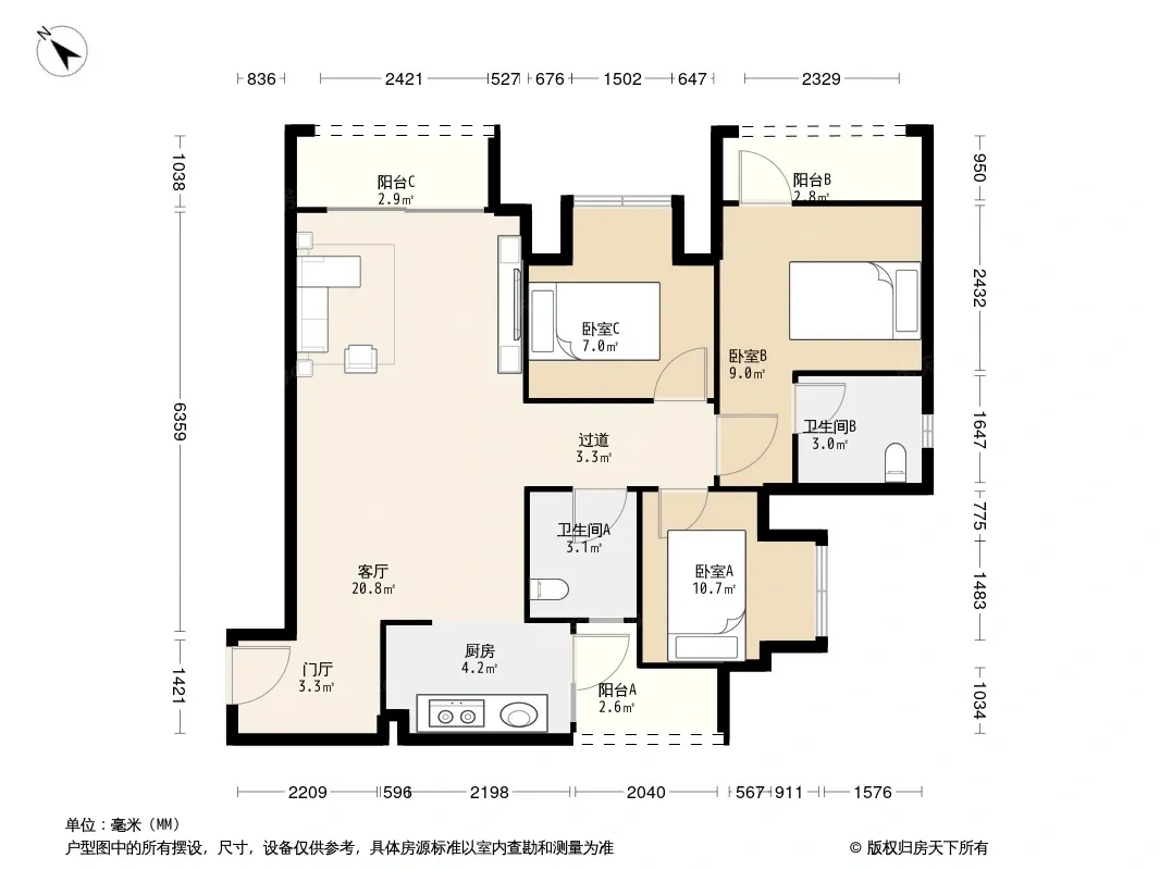 户型齐全,主打明厨,明卫三居