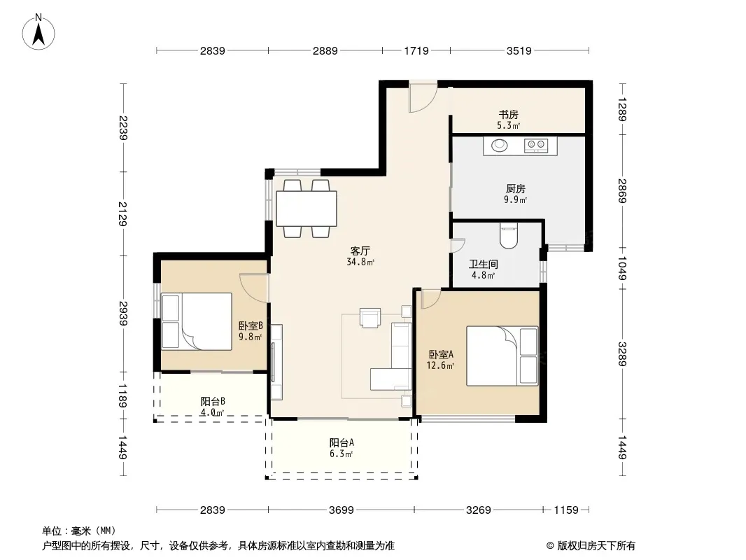 户型齐全,主打户型方正,明卫,明厨,客厅朝南,全明格局三居