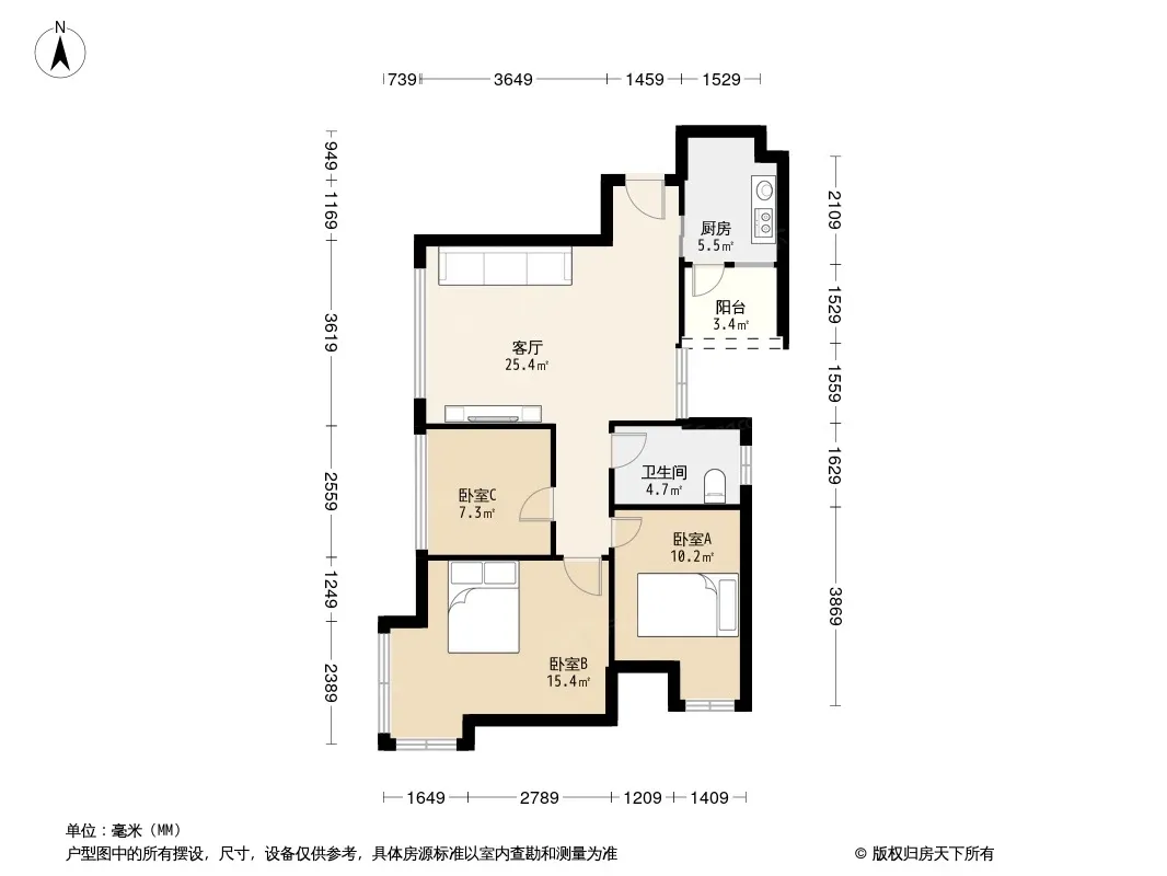 户型齐全,主打明卫,明厨,客厅朝南,全明格局三居