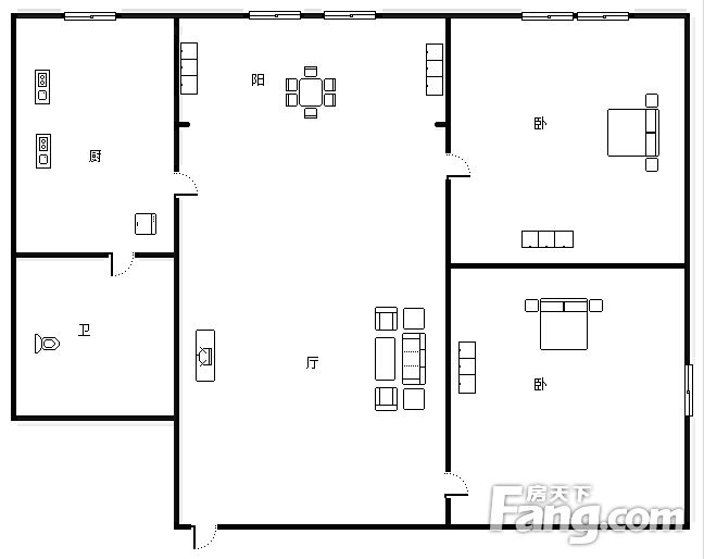 户型齐全,主打明卫,明厨,客厅朝南,主卧朝南三居