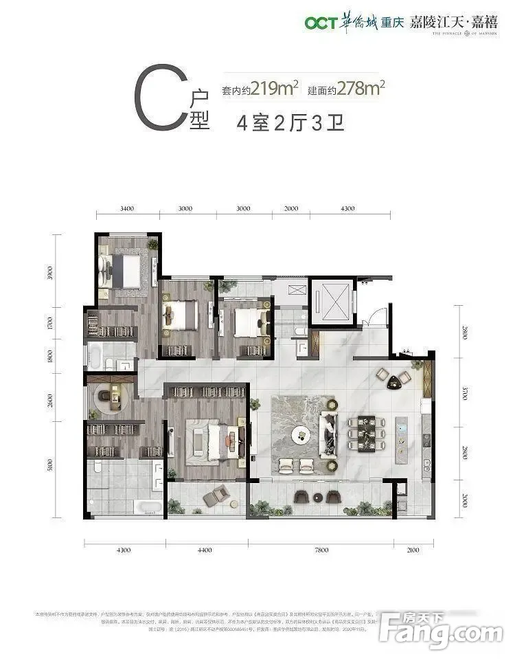 华侨城嘉陵江天户型主要有184平-278平的户型方正,主卧带卫的四居 、256平-278平的主卧套间,大面宽阳台的五居 。