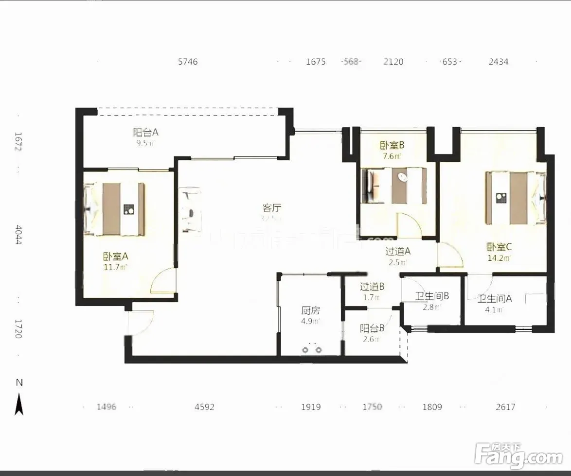 户型齐全,主打南北通透,户型方正,采光充足,主卧套间,独立衣帽间,独立庭院四居