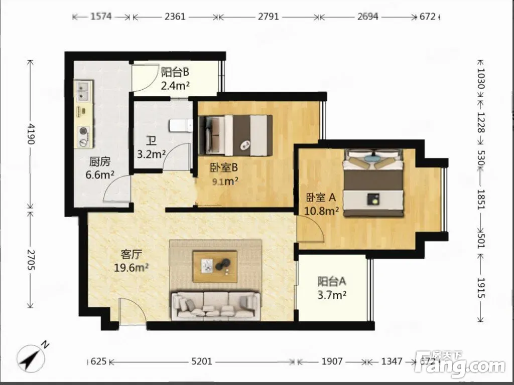 万科锦程 2室1厅 南