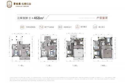 碧桂园·长桥江山户型主要有377平-468平的南北通透,全明格局的五居 、227平-227平的全明格局,户型方正的四居 。