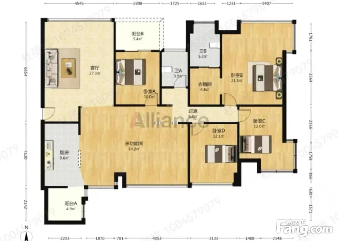 户型齐全,主打户型方正,明卫,独立衣帽间,客厅朝南,双阳台,主卧朝南四居