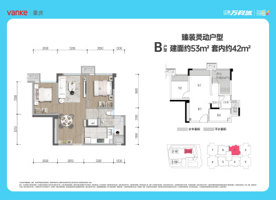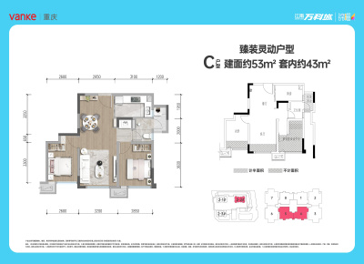 江南万科城户型主要有53平-53平的户型方正,采光充足的二居 、70平-100平的全明格局,户型方正的三居 。