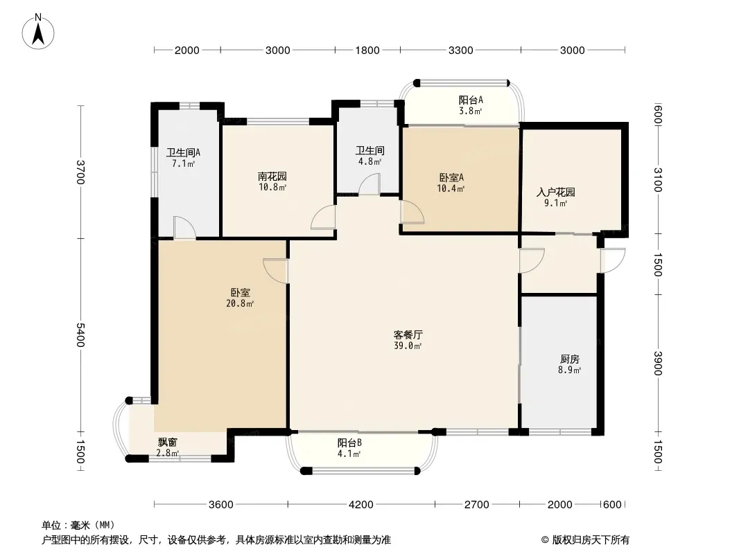 户型齐全,主打入户花园,双阳台三居