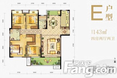 户型齐全,主打户型方正,主卧朝南,独立玄关,主卧带卫,带衣帽间四居