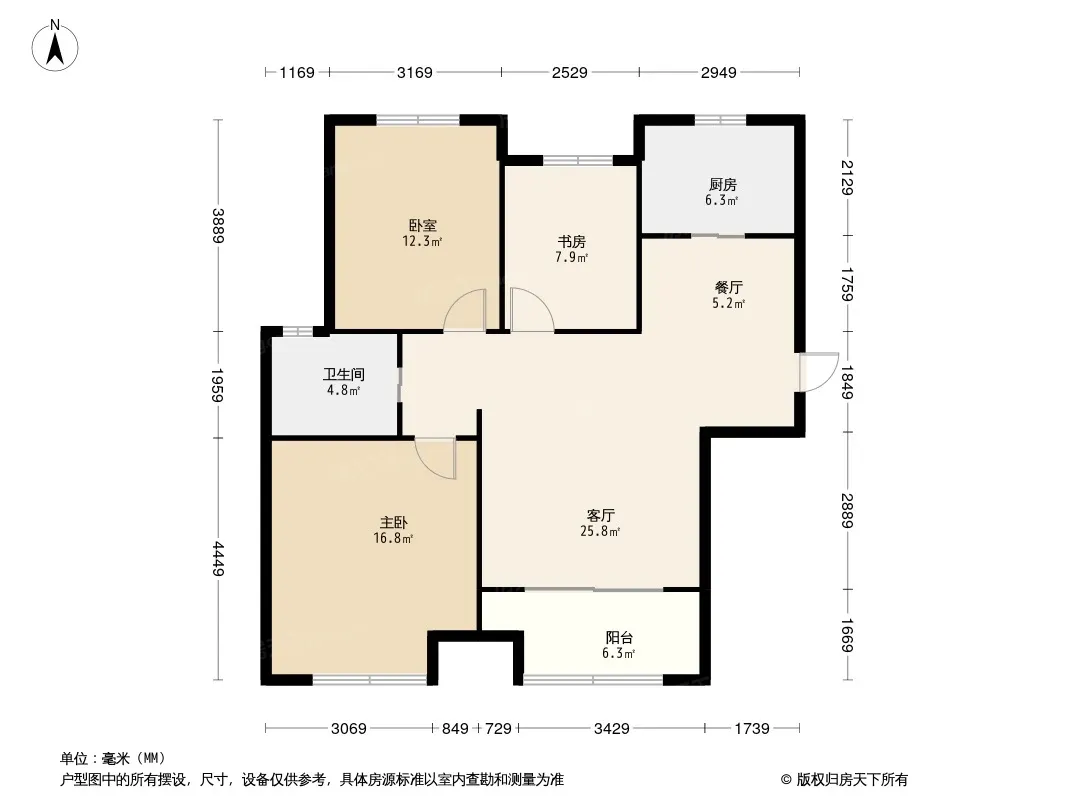 户型齐全,主打主卧带卫,观景飘窗三居