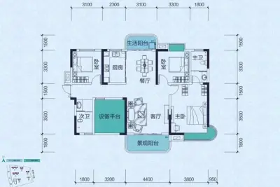 户型齐全,主打全明格局,户型方正,主卧带卫,大面宽阳台四居