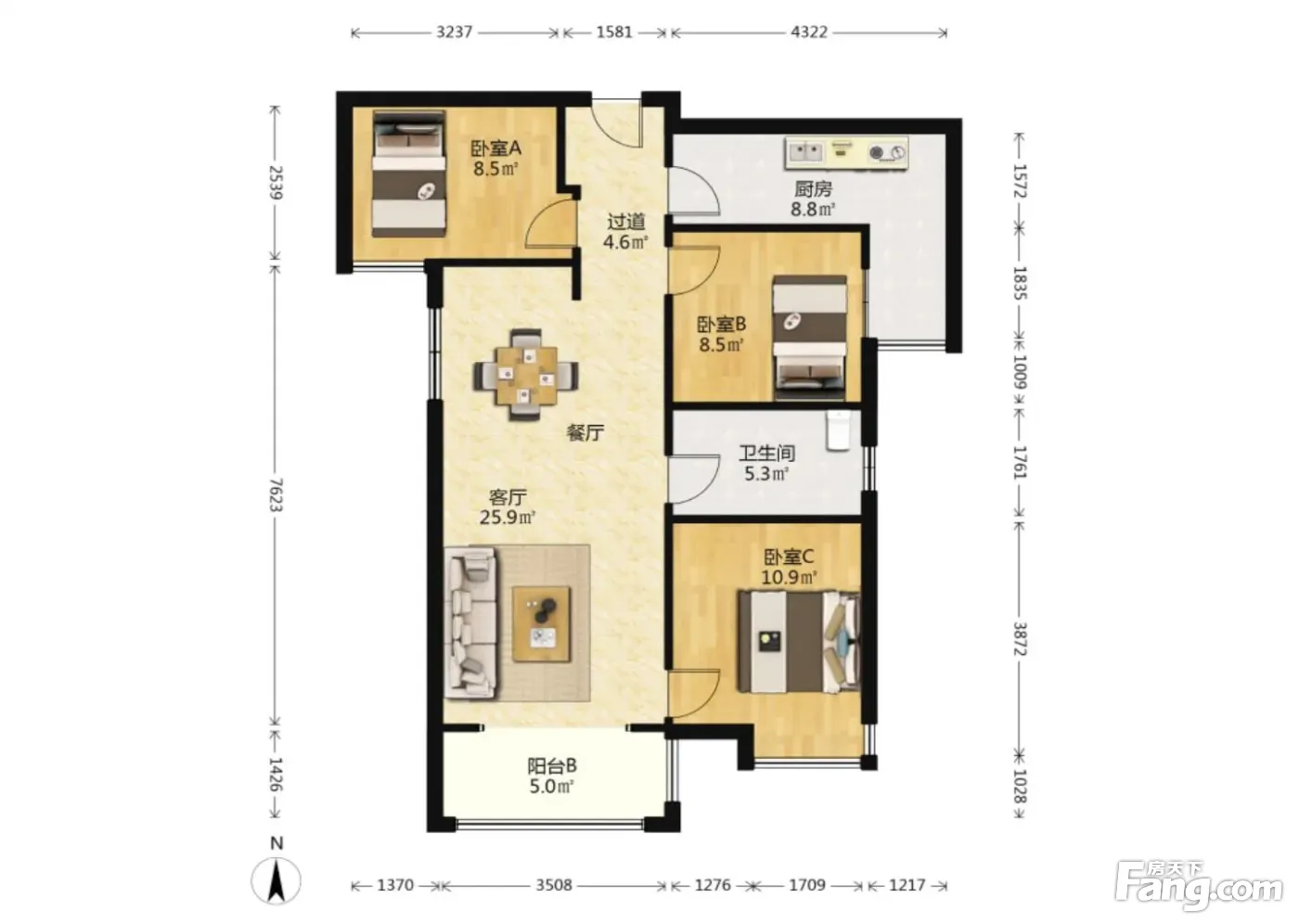 3室2厅1卫