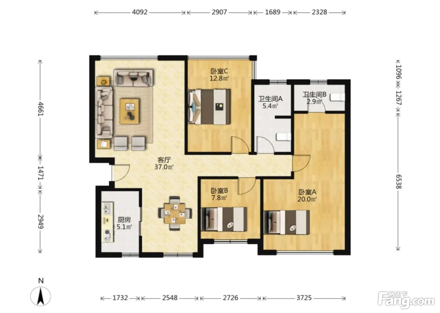 户型齐全,主打户型方正,明卫,主卧朝南三居