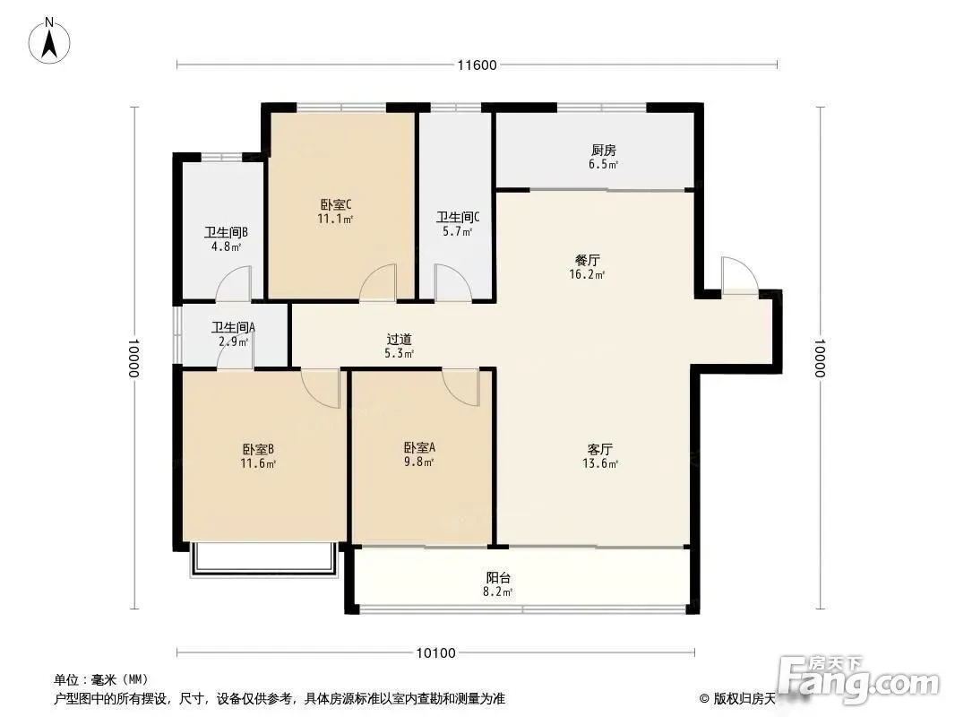户型齐全,主打主卧朝南,卧室带阳台三居