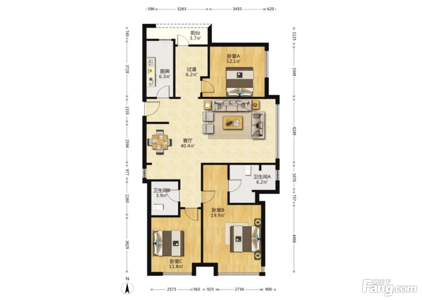 3室1厅2卫