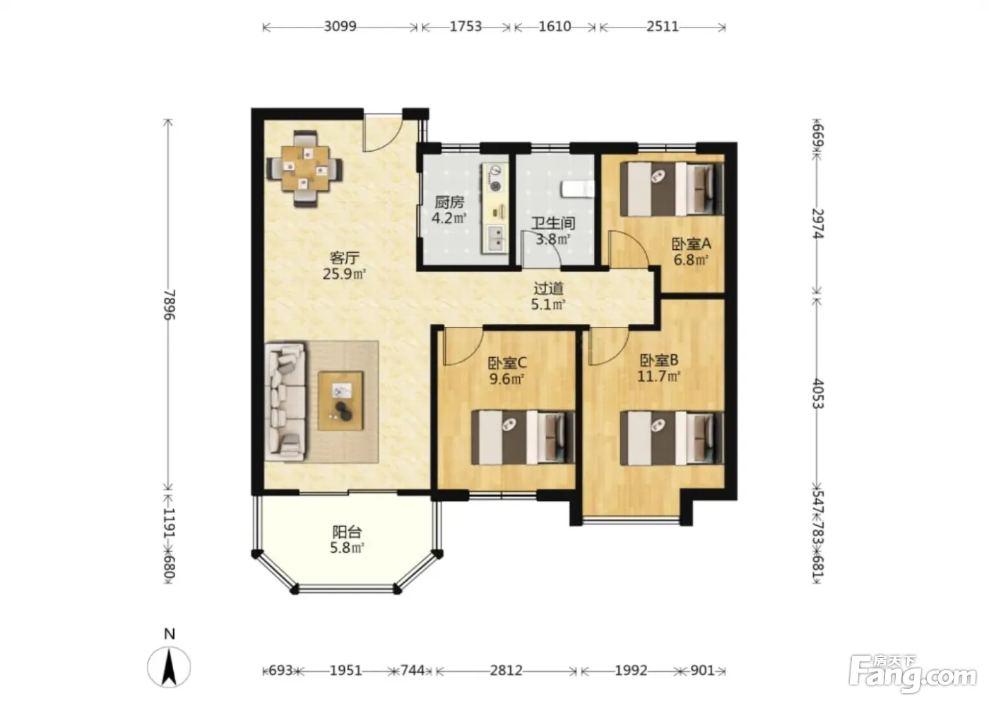 3室2厅1卫