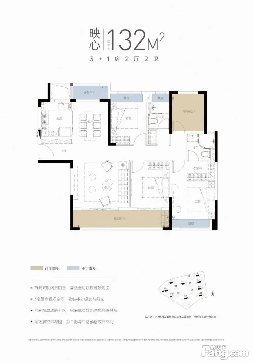 招商蛇口·璀璨学府户型主要有132平-143平的主卧带卫,卧室带阳台,大面宽阳台的四居 、114平-114平的主卧带卫,观景飘窗,大面宽阳台的三居 。