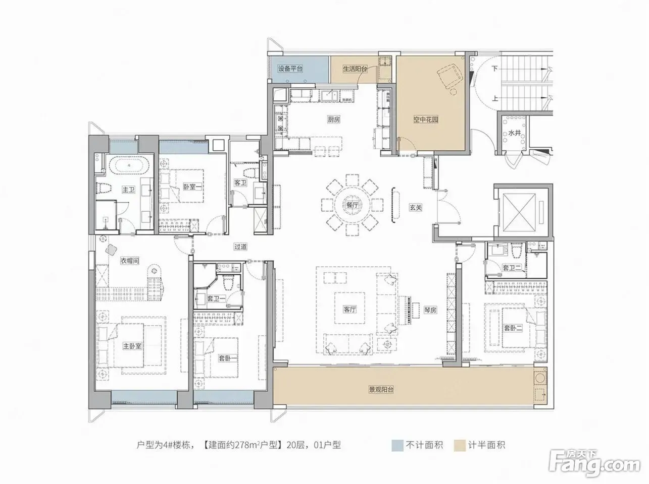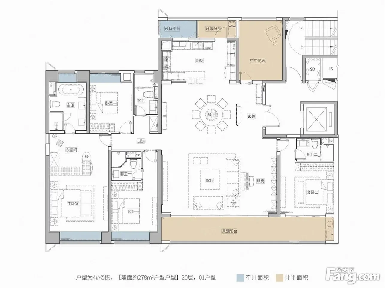 招商蛇口·江山境户型主要有190平-281平的户型方正,客厅朝南的四居 、278平-278平的户型方正,客厅朝南的五居 。