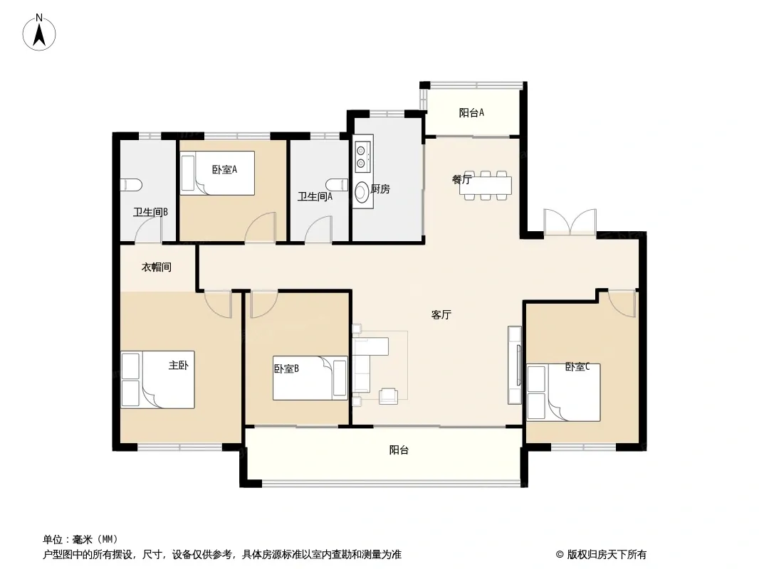 户型齐全,主打客厅朝南,卧室朝南四居