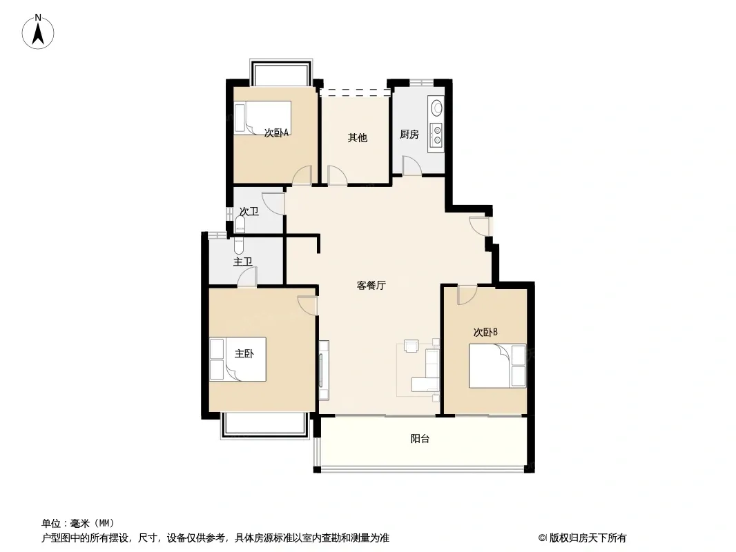 户型齐全,主打南北通透,卧室带阳台四居