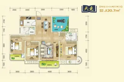 户型齐全,主打入户花园,双阳台三居