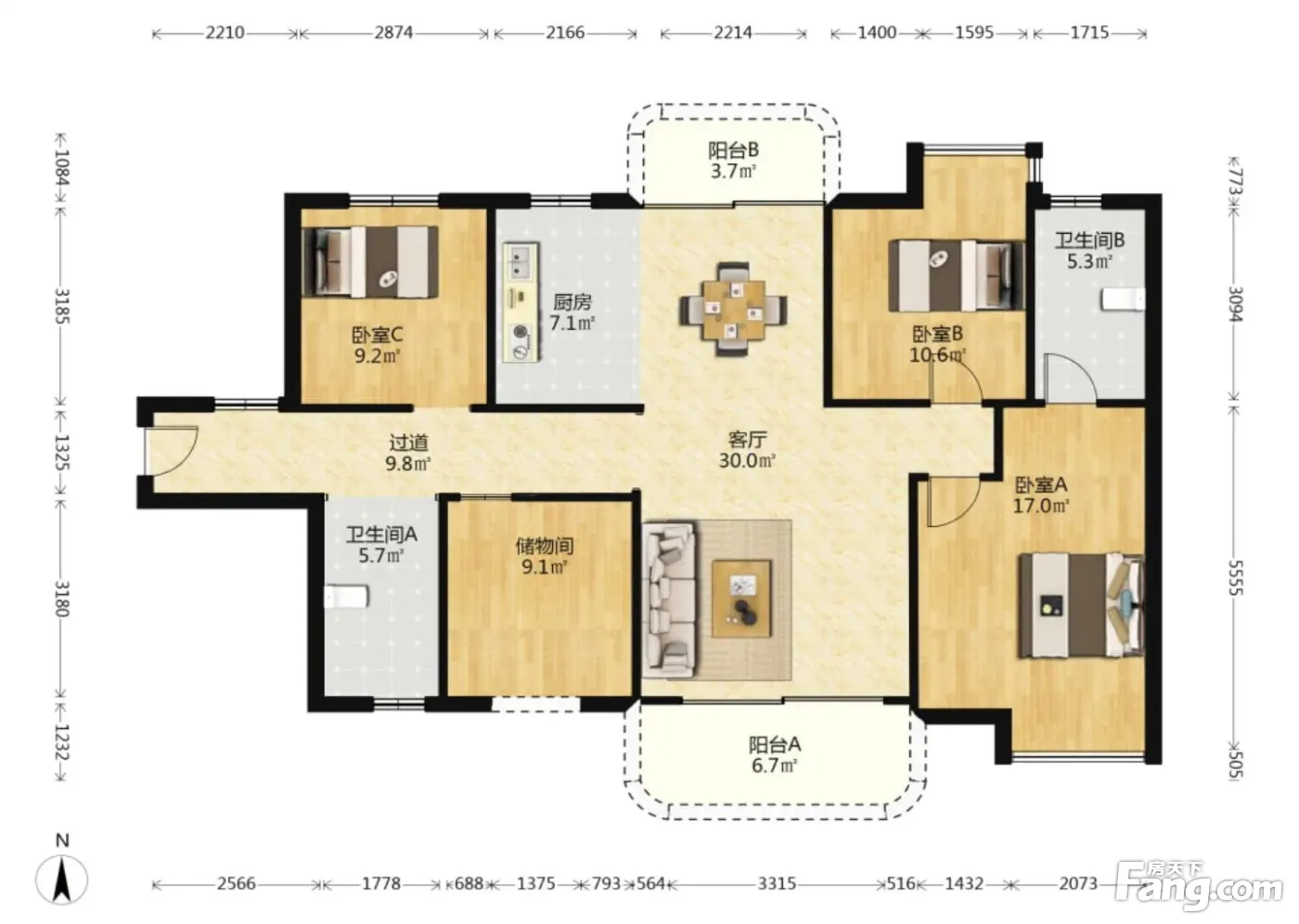 户型齐全,主打全明格局,户型方正,主卧带卫,大面宽阳台四居