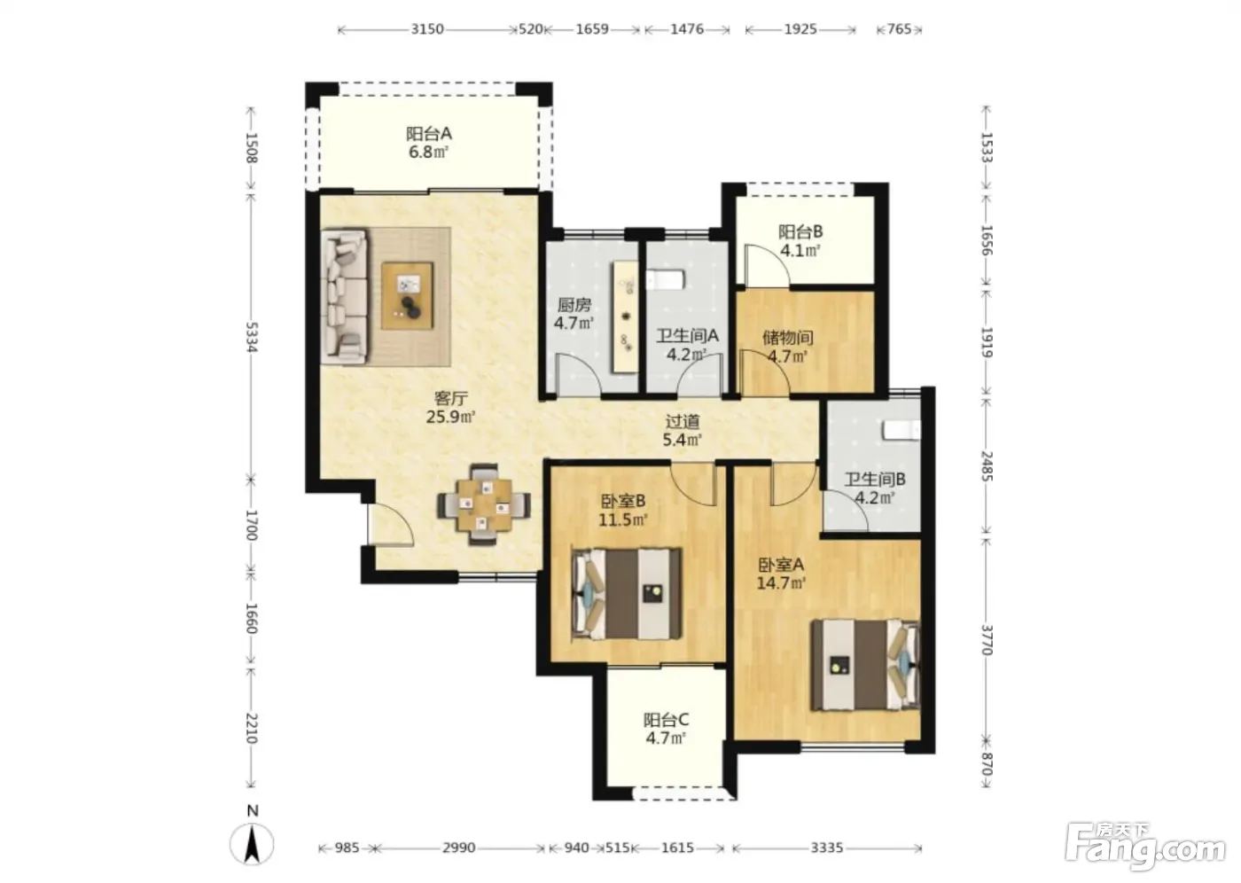 3室2厅1卫