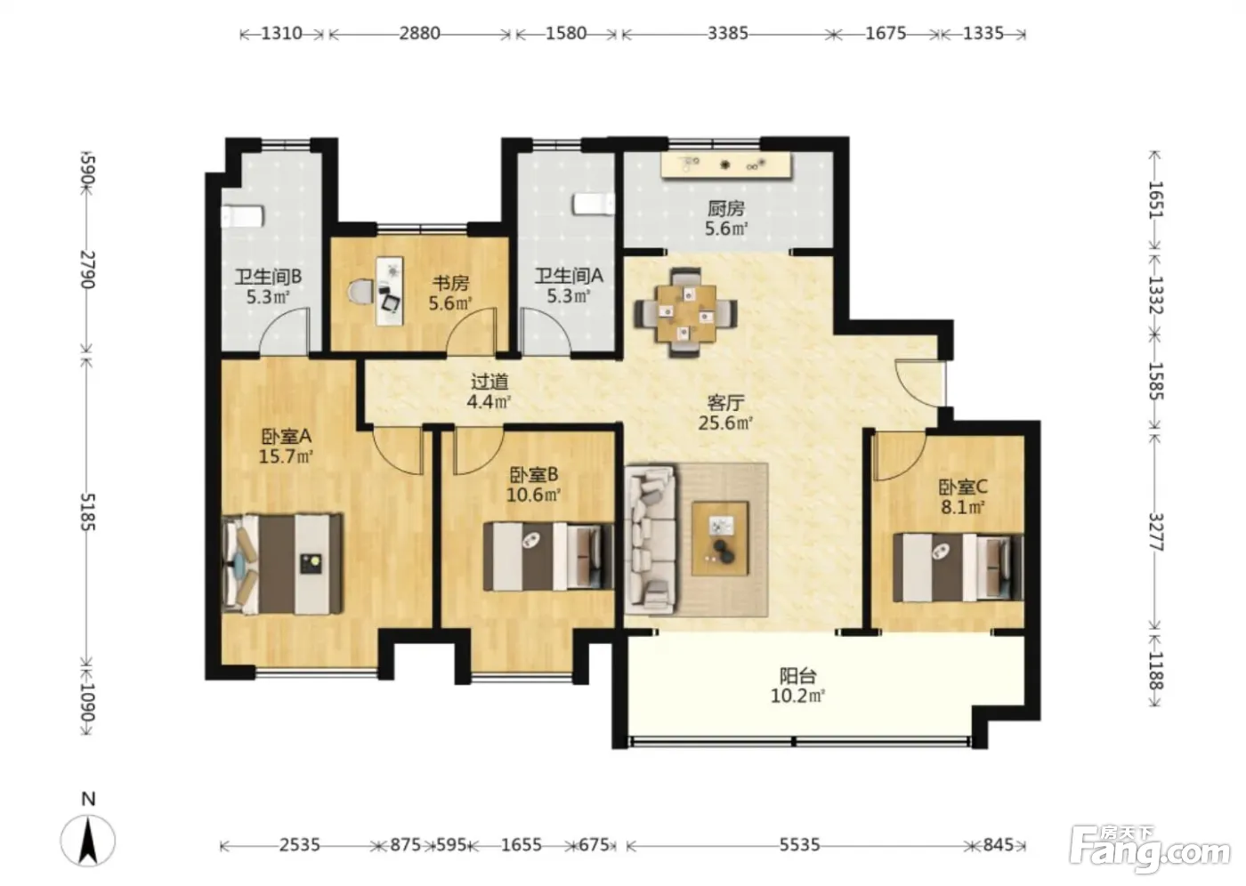 户型齐全,主打南北通透,户型方正,采光充足四居