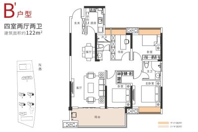 金侨风华府户型主要有119平-136平的主卧朝南,主卧带卫,卧室带阳台的四居 、106平-122平的主卧带卫,卧室带阳台的三居 。