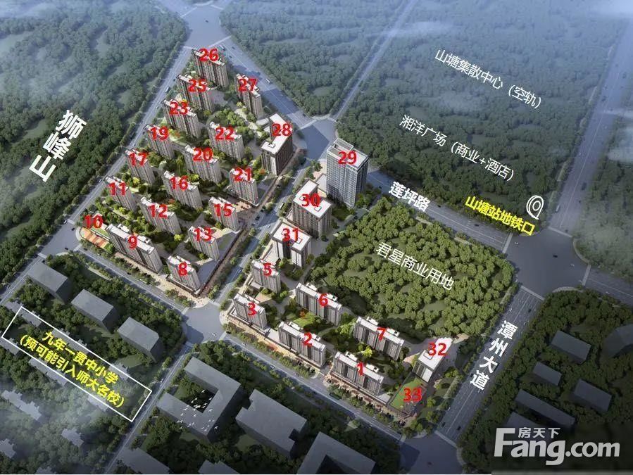 1、交通配套:3号线山塘站约260米、8号线(规划);2、商业配套:项目附近有4大商业巨头 (宜家、卓伯根、龙湖天街、洋湖水街); 3、医疗配套:湖南省妇女儿童医院等; 4、休闲配套:湘江风光带、国家 4A 级景区洋湖,7200 亩湿地公园后花园,五馆一园心(李自健美术 馆、雷宜锌雕塑馆、谢子龙影像馆、谭盾音乐馆、洋湖湿地科普馆、洋湖国际雕塑园、湘江新区规划档案中心)在侧,坐享湖湘文艺高地; 5、配套:自建、博才、师大博才、麓山国际、雅礼、长郡双语。