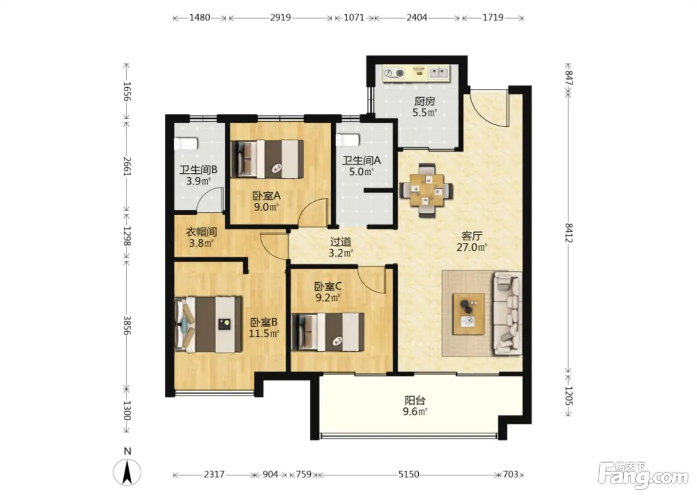 3室2厅1卫