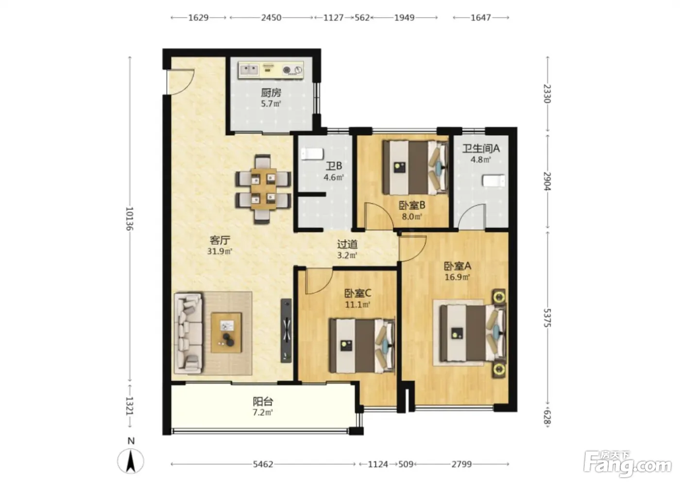 3室2厅1卫