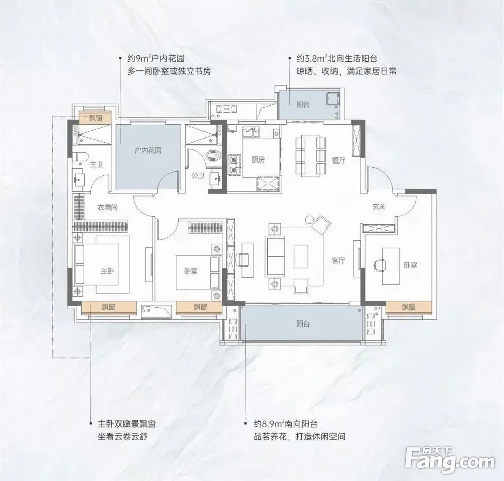 户型齐全,主打双阳台,大面宽阳台四居