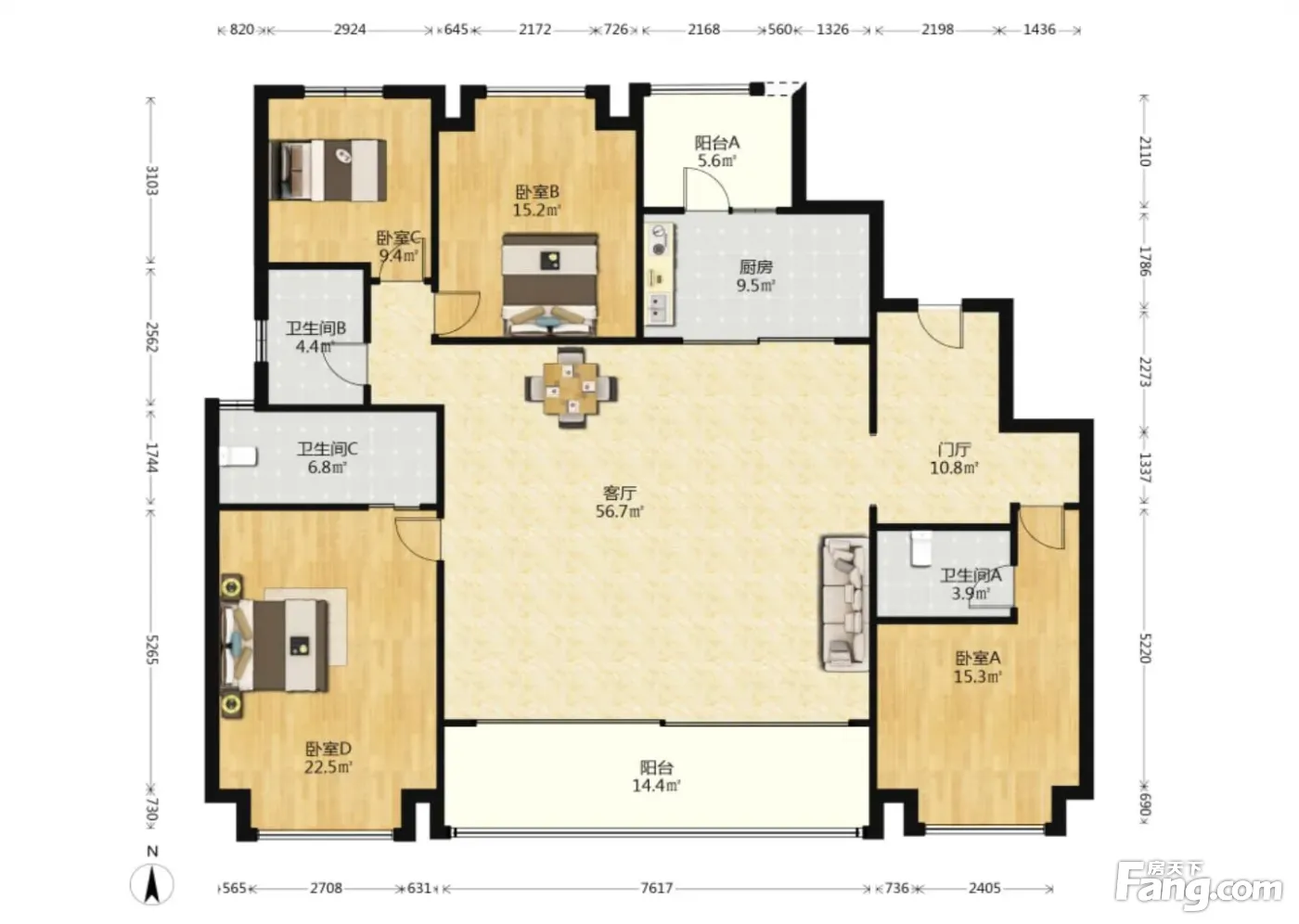 户型齐全,主打主卧带卫,独立衣帽间四居